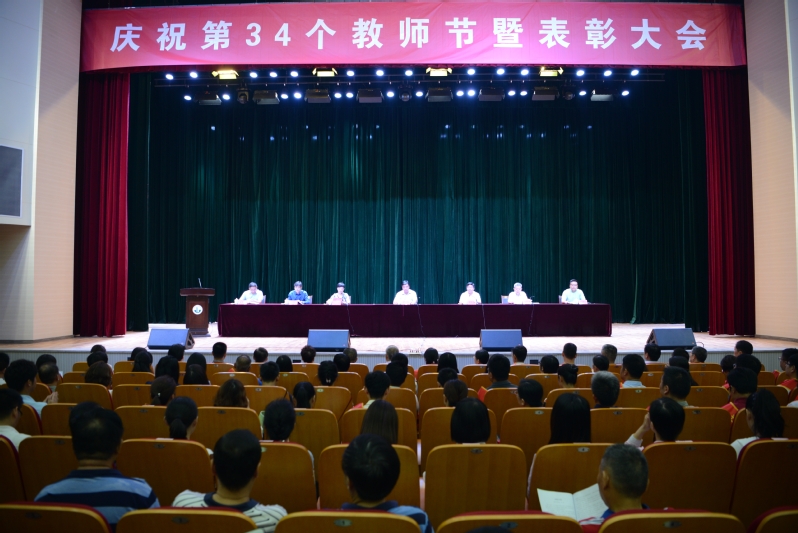 9月10日下午,学校庆祝第34个教师节暨表彰大会在会堂隆重召开。党委书记孙进,院长沈士德,党委副书记梁惠,纪委书记魏勇,副院长曾凡远、刘海波、蒋兆峰,以及全体中层干部、专兼职教师、机关教辅管理干部、学生代表1000余人参加大会。