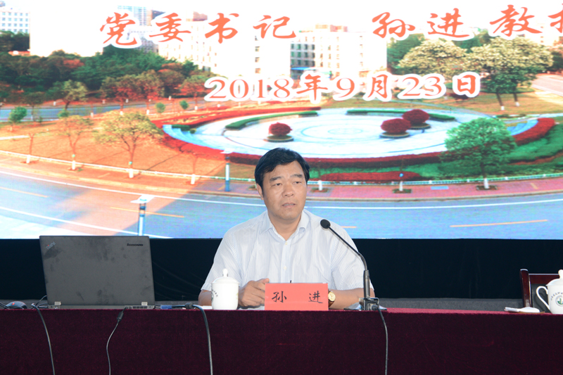 9月23日上午,学校体育馆座无虚席,2018级新生入学教育第一课在此开讲。党委书记孙进教授与4430余名新生一起畅谈如何读大学。讲座由党委副书记梁惠主持。