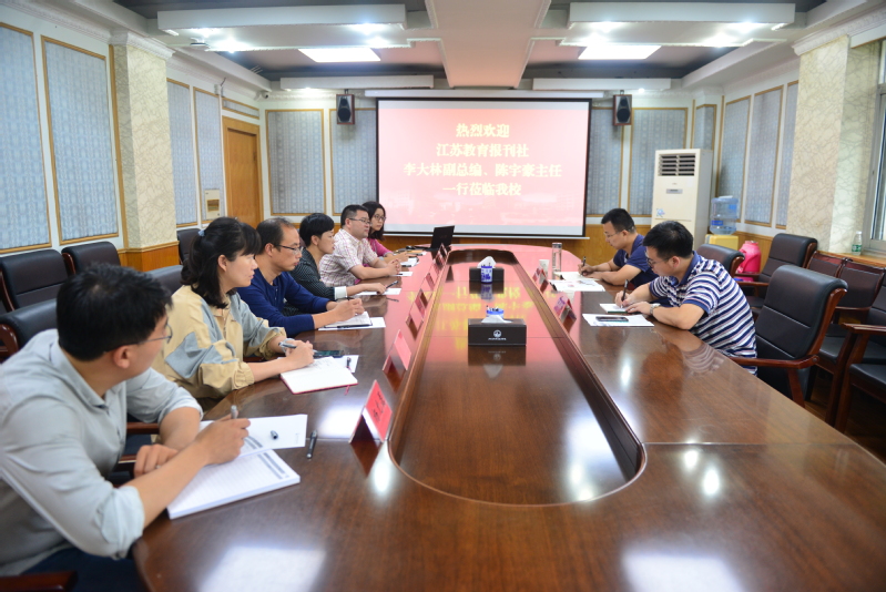 9月19日,《江苏教育报》李大林副总编、陈宇豪主任一行来校参观考察。校党委副书记梁惠,党委委员、宣传部部长葛志亮,以及宣传部全体成员热情接待了李大林一行,并举行座谈会就如何进一步做好外宣工作,提高校报编辑质量等进行深入交流。