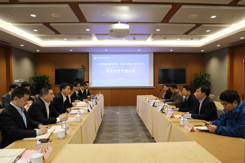 沈士德介绍了学校办学历程、基本情况,他说,学校与中建八局装饰公司有良好的合作基础和前景,希望双方发挥各自优势,在产学研合作、科研成果转化等方面加强合作,争取产生一批标志性成果,实现优势互补、互利共赢、共同发展。孙士东介绍了企业情况,对我校毕业生工作能力和综合素质给予充分肯定,并希望校企双方在订单人才培养、校内人才培训基地建立、科技研发等方面开展深度合作,共同构建校企合作长效机制。