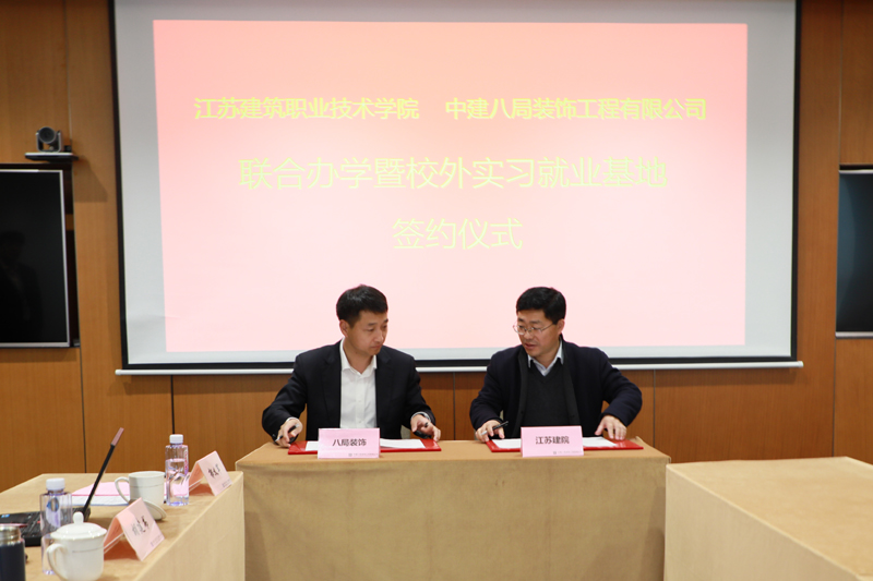 我校建筑装饰学院党政负责人、专业教师代表以及中建八局装饰公司领导班子成员、各职能部门负责人参加了签字仪式。