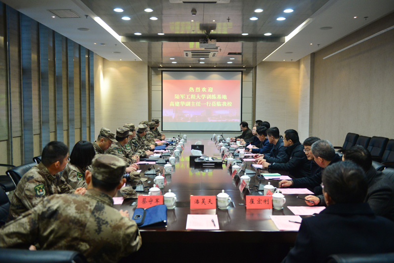 12月3日,陆军工程大学训练基地高建华副主任带领基地有关部门领导来我校考察交流,并就军民深度融合内容进行深入探讨。我校沈士德院长、曾凡远副院长与高建华一行进行了座谈交流,学校相关职能部门和二级学院负责人参加了座谈会。