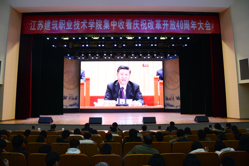 在校校领导孙进、沈士德、梁惠、魏勇、曾凡远,校院二级理论学习中心组成员、全校无课的教职员工、学生党员和入党积极分子等近500名师生在会堂共同观看了大会盛况。