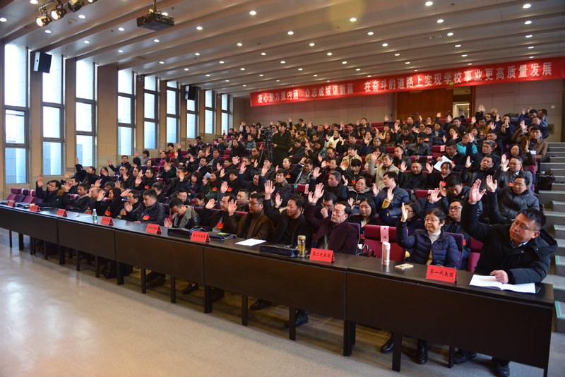 与会代表们在讨论学校2018年工作报告、财务工作报告的同时,充分发挥主人翁责任感,纷纷为学校发展献计献策。闭幕式上,全体代表审议通过了学校工作报告、财务工作报告和大会决议。
