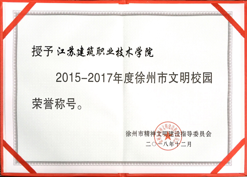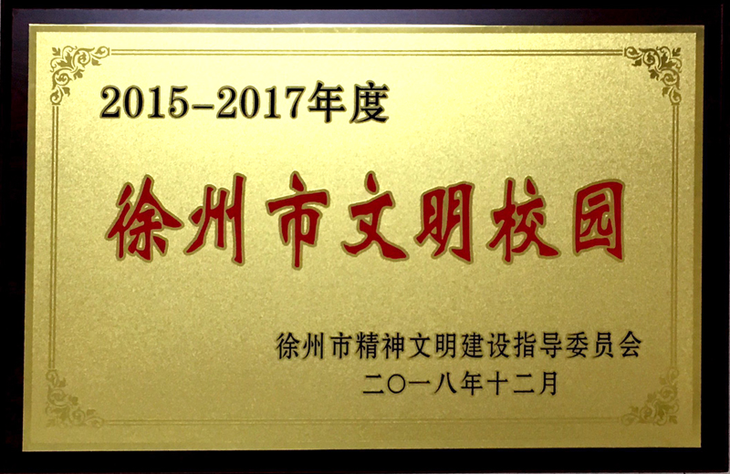 近日,市精神文明建设指导委员会发布《关于表彰2015-2017年度徐州市文明单位、文明社区、文明村镇、文明校园的决定》文件,我校荣获“2015-2017年度徐州市文明校园”荣誉称号。