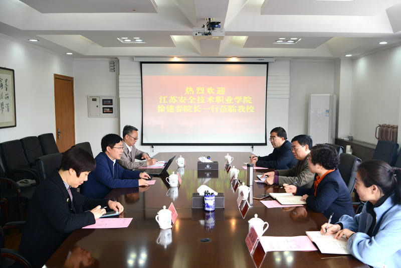 3月27日上午,江苏安全技术职业学院院长徐建春、副院长李桂萍,党政办公室(国际合作与交流处)主任刘新立,国际合作与交流处副处长李冰艳一行4人来我校交流考察,我校院长沈士德,党政办公室和国际合作与交流处负责人与来宾在行政楼第一会议室进行座谈交流。