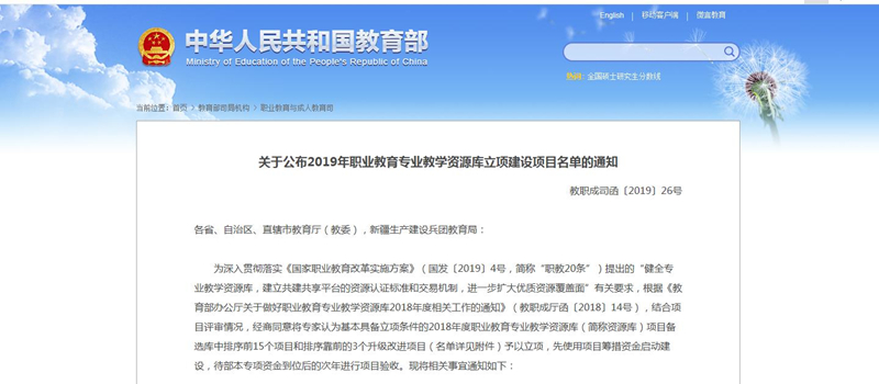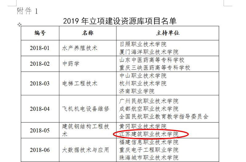 近日,教育部发布《关于公布2019年职业教育专业教学资源库立项建设项目名单的通知》(教职成司函〔2019〕26号)文件,我校申报的“建筑钢结构工程技术资源库”获批立项。