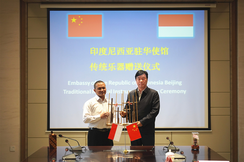 孙进代表学校理事会聘请苏亚德参赞为学校的理事,欢迎参赞先生为学校的发展出谋划策贡献智慧。苏亚德邀请孙进书记择时赴印尼开展教育文化洽谈交流活动,并代表印尼驻华使馆赠送我校印尼传统乐器昂格隆竹琴和传统印尼服饰,期待未来有更多的印尼文化元素为我校的国际化发展注入新色彩。