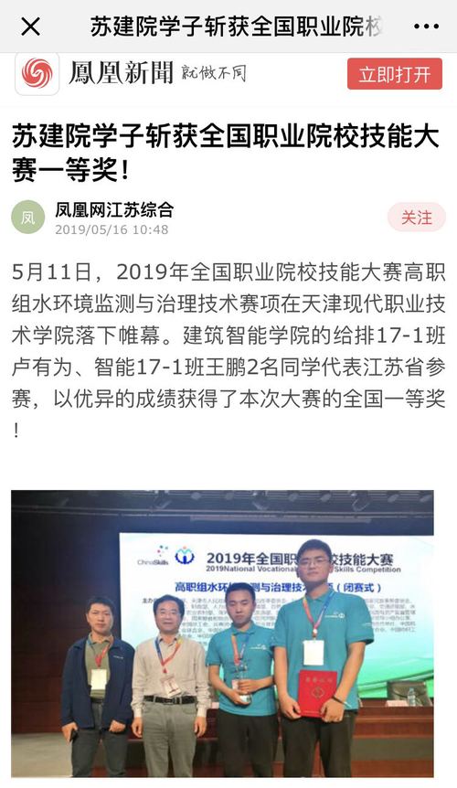 5月11日,2019年全国职业院校技能大赛高职组水环境监测与治理技术赛项在天津现代职业技术学院落下帷幕。建筑智能学院的给排17-1班卢有为、智能17-1班王鹏2名同学代表江苏省参赛,以优异的成绩获得了本次大赛的全国一等奖!