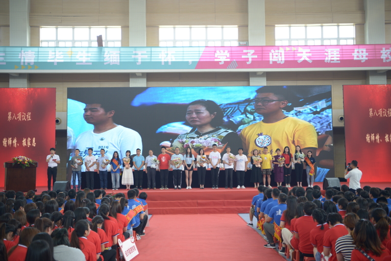 在“谢师情、报家恩”环节中, 10名教师代表为毕业生们送去诚挚的祝福,全场3995名毕业生以深深鞠躬谢别恩师,在场师生为之动容。9名毕业生家长代表来到典礼现场,为毕业生们送上美好祝福,分享孩子毕业喜悦。