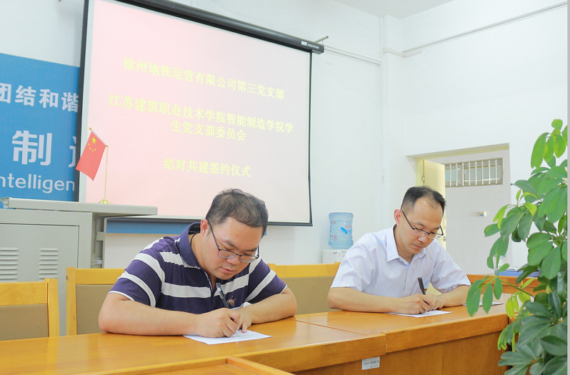 最后,我校智能制造学院党总支学生党支部与徐州地铁运营有限公司第三党支部签署了“共建美丽地铁”活动的共建协议,并获赠地铁一号线车辆模型。