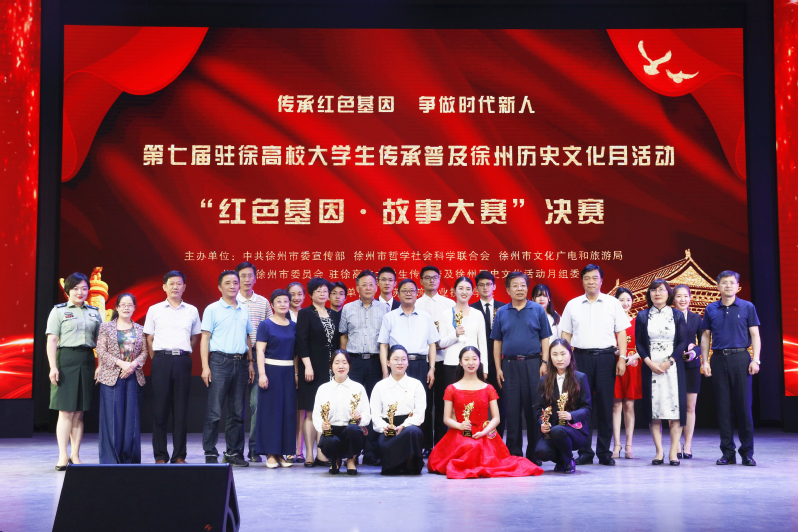 6月25日下午,第七届驻徐高校大学生传承普及徐州历史文化活动月“红色基因·故事大赛”赛项决赛在我校会堂举行。校党委书记孙进教授出席大赛并致辞。徐州市哲学社会科学联合会主席刘宗尧、市淮塔管理局局长蒋越锋、市文广旅局副局长张伟,我校副院长曾凡远及兄弟院校相关负责人担任大赛评委,现场千余名师生观摩比赛。