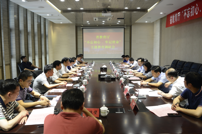 7月1日上午,省教育厅职教处处长刘克勇带队来我校开展“不忘初心、牢记使命”主题教育调研,校党委书记孙进、院长沈士德、副院长曾凡远,徐州市教育局副局长李清、职教处处长李乐,邳州中专校校长钟雷声等人在图书馆南会议室参加座谈交流。