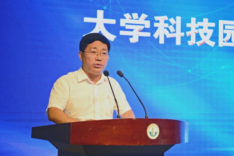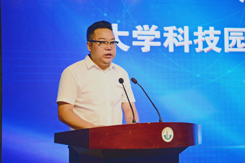 中国矿业大学大学科技园有限公司副总经理王英平代表在徐高校大学科技园致贺词