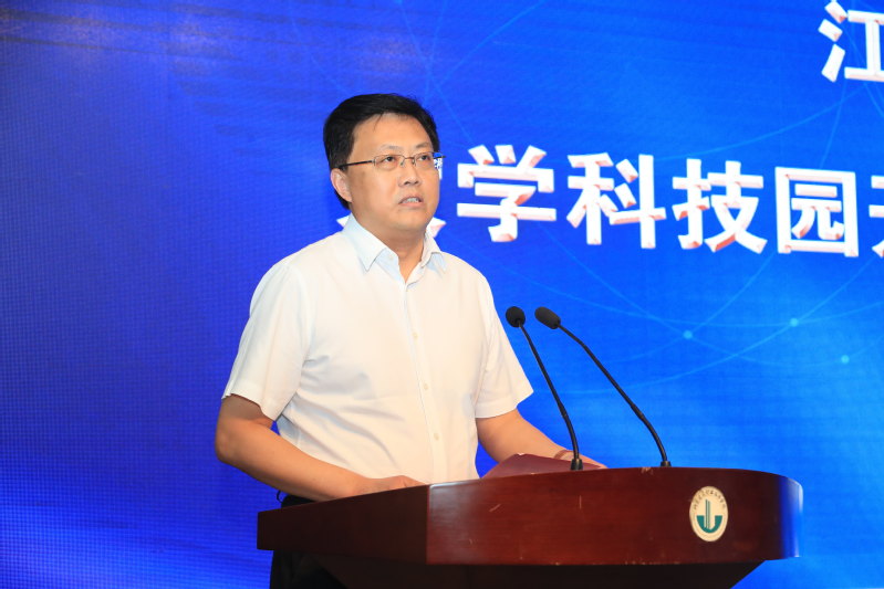 沈士德在启动仪式上讲话。他指出大学科技园依托泉山区产业优势、学校人才智慧优势和特色办学资源,努力成为深度服务区域产业发展的新技术研发基地、具有良好市场科技活力的企业孵化基地和高技能素养的创新创业型人才培养基地。以科技园开园为契机,学校将进一步发挥科技和人才优势,整合各类资源,大力加强科技园建设,营造优良的创新环境,助推创新链、产业链、人才链紧密融合,努力形成校地深度合作,产教深度融合,各方发展共赢的良好局面。适逢我校建校40周年校庆一百天倒计时启动仪式,办学四十年,既是我们薪火相传、潜心育人创辉煌的四十年,更是努力服务区域、校企合作齐发展的四十年,我们将初心不移、接续奋进,团结各方力量,凝聚各界智慧,以学校高质量发展,为五个“新泉山”建设、“强富美高”新徐州建设再立新功。