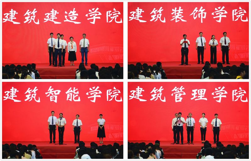 典礼上,沈士德教授发表了热情洋溢的讲话。他代表学校向4738名新成员正式加入建院大家庭表示热烈欢迎,对建院2019级新生进行数据分析,介绍了学校的办学历史和办学成就。他对全体新生提出四点希望:一是成就最美,首在崇德。希望同学们能够严于修身、严于律己,“扣好人生第一粒扣子”,在建院遇见一个最好的自己;二是成就最美,要在尚学。希望同学们充分利用学校学习资源,掌握科学的学习方法,养成终身学习的良好习惯,在建院成就一个优秀的自己;三是成就最美,重在实践。希望同学们能够以扎实的技能、过硬的本领,在服务社会的广阔天地中,练就一个不断拼搏的自己;四是成就最美,贵在相处。希望同学们遇到挫折时不气馁、不灰心,相信办法总比困难多,学会享受奋斗的独处。