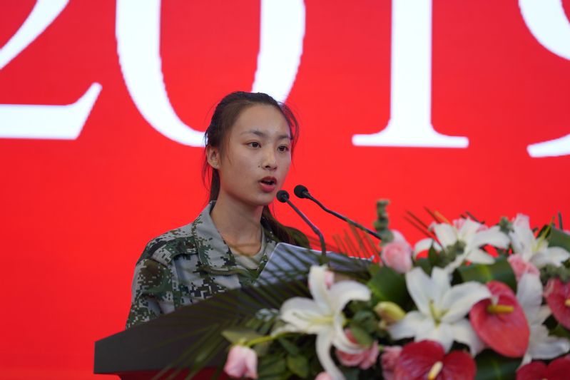 外宾LINNA女士致辞,她对学校为留学生创造的优良学习环境与成才平台表示感谢,并勉励全体留学生要珍惜学习机会,努力掌握专业知识与技能,早日学成,报效国家。9个二级学院党政领导班子成员依次上台,向新生表达了真挚的祝愿和殷切的希望。教师代表张远鼓励新生们要不负青春韶华,勇于追逐梦想,在拼搏奋进中实现人生理想。家长代表王勇同志希望新同学们更加努力,早日成长成才,为国家做贡献。艺术设计学院视觉19-1班高欣佳同学代表全体新生发言。