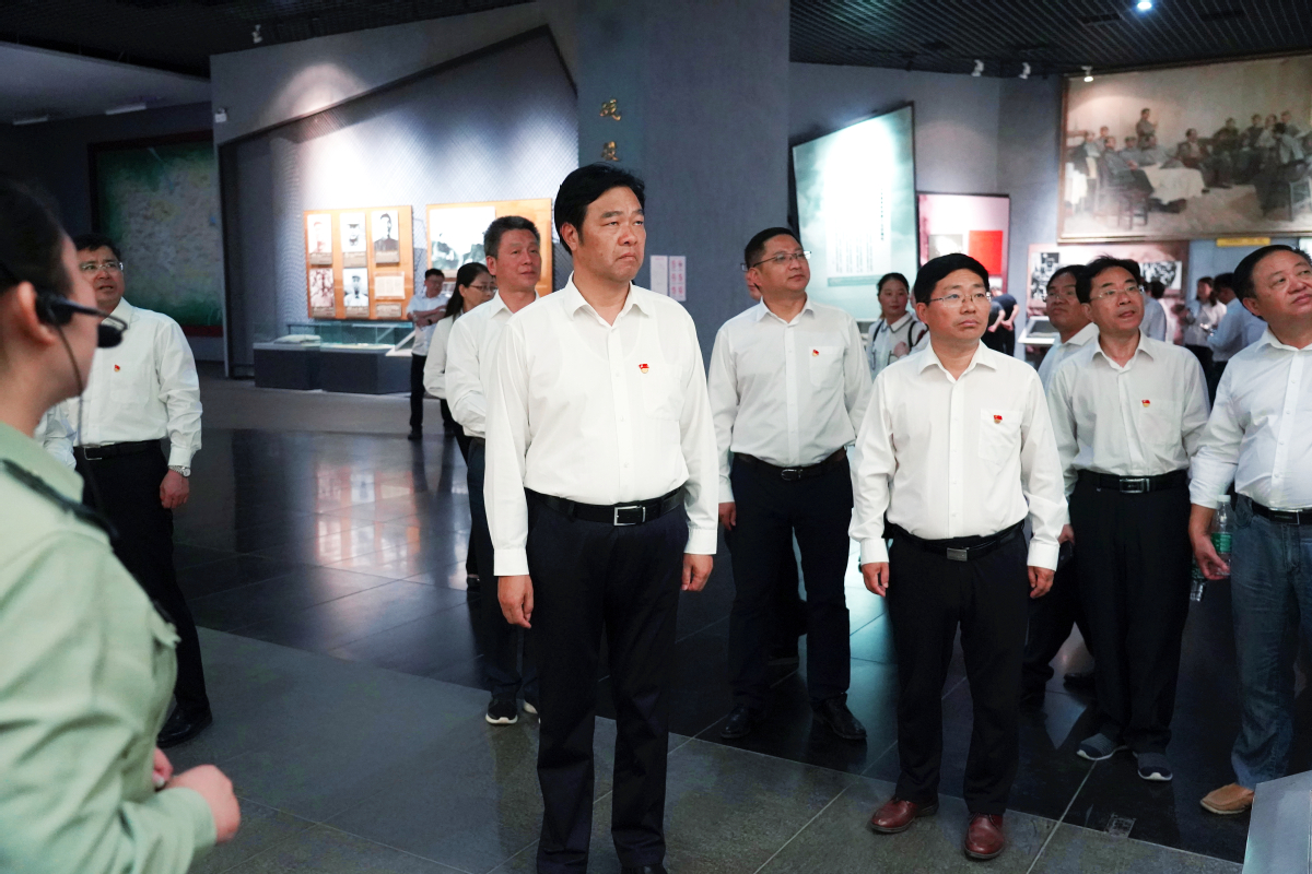 9月30日下午,国庆节前夕,华体会体育党委准确把握主题教育的着力点,依托徐州红色教育资源,紧抓思想源头,开展爱国主义教育。学校党委书记孙进教授、院长沈士德教授、副书记梁惠、纪委书记魏勇、副院长曾凡远、副院长刘海波、副院长蒋兆峰,全体中层干部在淮海战役陵园开展“不忘初心、牢记使命”主题教育现场学习活动,回顾革命历史,缅怀英雄事迹,传承红色精神,汲取前进力量。在淮海战役纪念塔前敬献花圈、鞠躬敬礼,在孙进的带领下重温入党誓词、重问入党初心;在淮海战役纪念馆里聆听红色革命故事,接受革命传统教育,接受革命精神洗礼,感悟理想信念力量。
