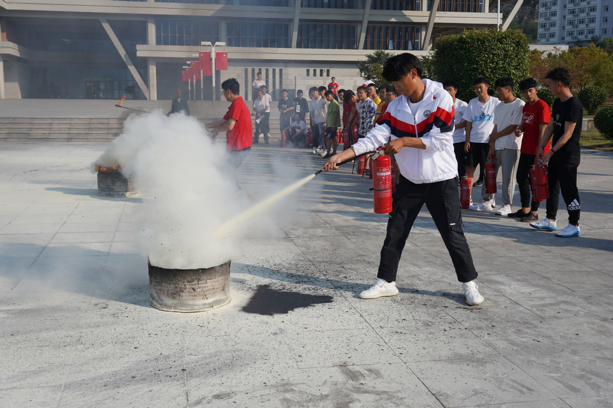 9月29日下午3:00,校保卫处、学工处在学生公寓举行了2019级新生应急逃生疏散和灭火器灭火演练。