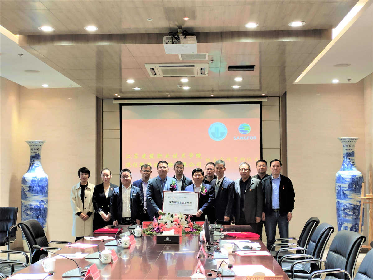 10月29日上午,我校与深信服科技股份有限公司校企合作签约暨“深信服信息安全学院”揭牌仪式在图书馆会议室举行。学校院长、党委副书记沈士德教授,深信服科技股份有限公司集团副总裁兼教育事业部总经理姚诗成,学校相关职能部门负责人,信电工程学院领导班子和教师代表出席了仪式。