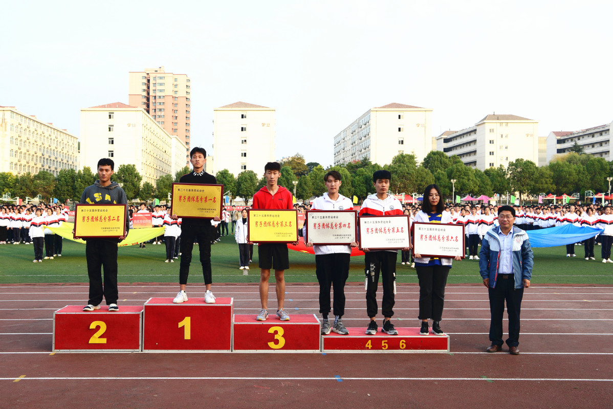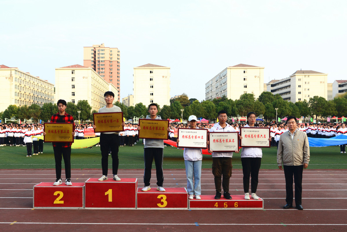 11月3日下午,我校第三十五届体育运动会顺利完成了全部赛事,圆满闭幕。校党委书记孙进教授、院长沈士德教授、副院长曾凡远、副院长蒋兆峰参加闭幕式并为获奖团队及个人颁奖,蒋兆峰宣布第三十五届运动会闭幕并发表讲话。校体工委全体成员以及各二级学院党总支副书记参加了闭幕式。