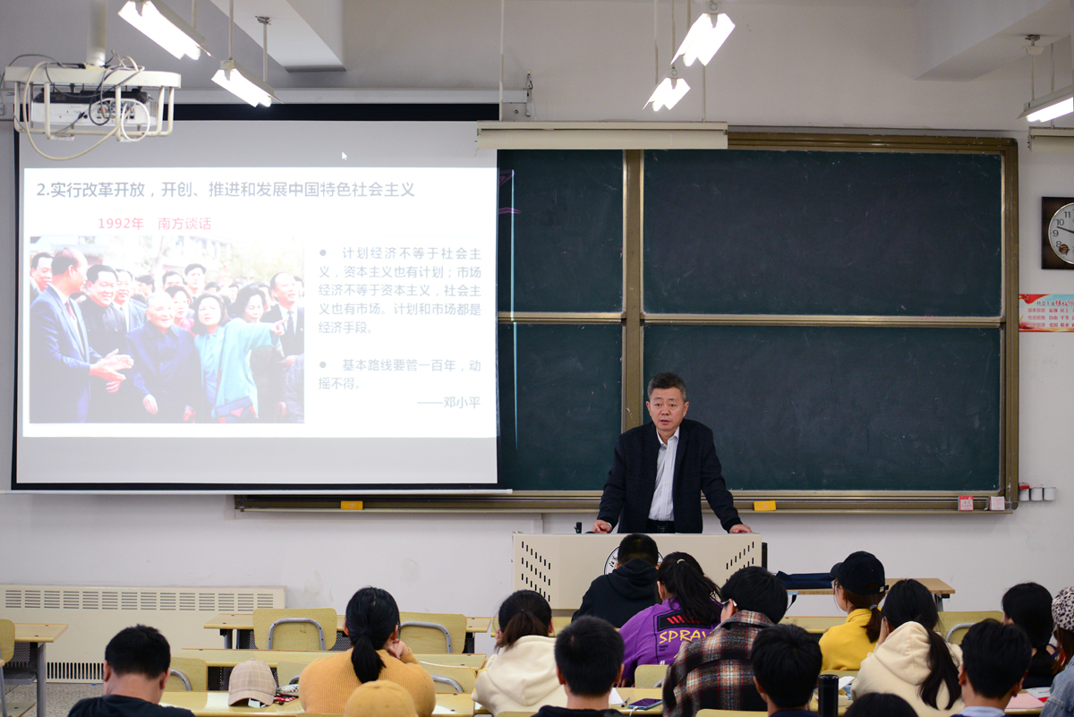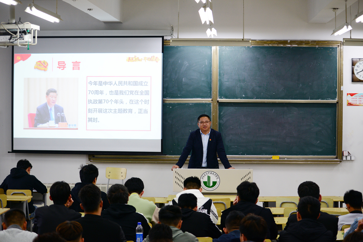 为把“不忘初心 牢记使命”主题教育推向深入,推动习近平新时代中国特色社会主义思想入脑、入心,发挥领导干部在宣讲党的理论、路线、方针、政策上的示范带动作用,校党委书记孙进教授、院长沈士德教授、党委副书记梁惠、纪委书记魏勇、副院长曾凡远、刘海波、蒋兆峰在11月5日-12日,走进课堂走上讲台,围绕《新中国成立70周年辉煌成就和历史经验》《中国共产党的初心和使命》两个主题讲授形势与政策课。