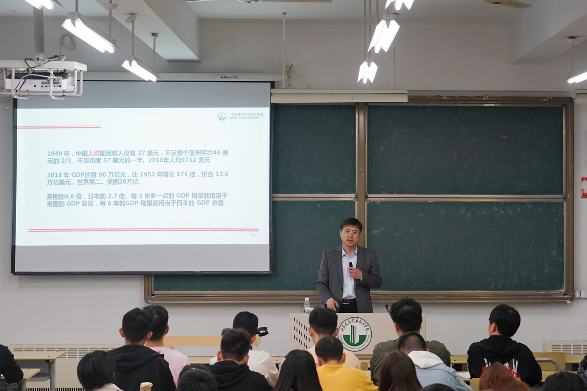 沈士德以“壮丽70年、奋斗新时代”为题,给建筑管理学院工程造价专业的学生讲授形势与政策课。他从战略布局的维度,用大量的经济数据和案例,讲述了新中国成立70年的辉煌历程,尤其是改革开放四十余年取得的巨大成就,经济建设创造了“中国奇迹”,重点强调改革开放是发展中国特色社会主义、实现中华民族伟大复兴的必由之路;阐述了只有社会主义才能救中国,只有改革开放才能发展中国、发展社会主义、发展马克思主义的深刻道理,希望同学们以“勤学、修德、明辨、笃实”之心,争做新时代弄潮儿。