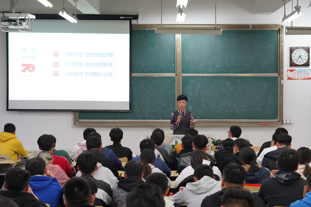 学校领导班子其他成员分别从新中国成立以来党对中国道路的探索与创新、新中国成立以来取得的发展成就、新中国成立以来探索中国道路的经验和意义等方面向学生全面阐述了中国共产党“能”、 马克思主义“行”、 中国特色社会主义“好”的三个重大理论问题;从为中国人民谋幸福的价值取向、为中华民族谋复兴的使命担当两个维度,结合学校具体工作,阐述了中国共产党人的初心和使命。