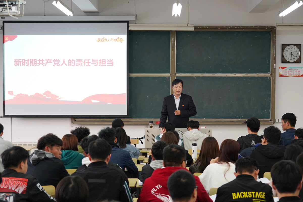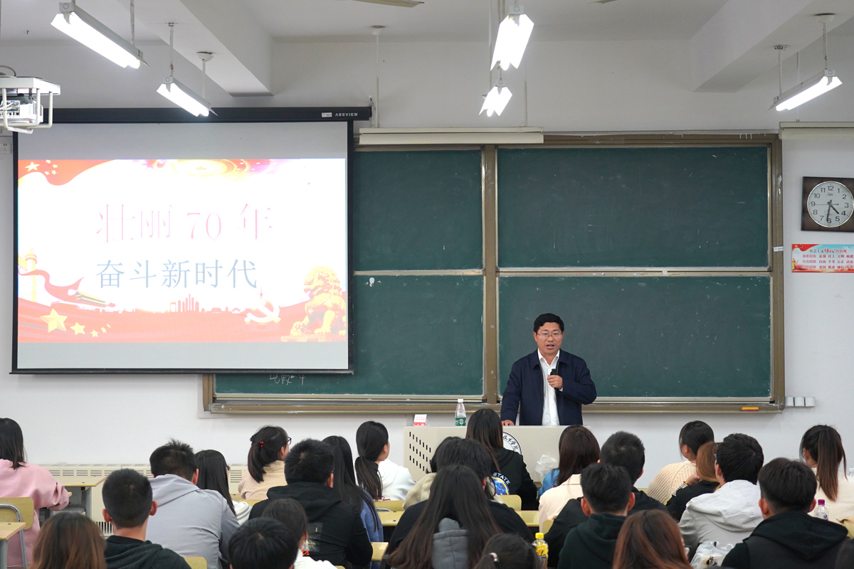 孙进以“辉煌七十年、奋斗新时代”和“新时期共产党人的责任与担当”为题连续两次给建筑管理学院建设工程监理和房地产经营管理专业的同学们讲授形势与政策课。他以中国特色社会主义进入新时代,中华民族迎来了从站起来、富起来到强起来的伟大飞跃为线索,讲述了新中国发展的辉煌历程;结合“不忘初心、牢记使命”主题教育,用生动的事例向同学们阐释了新时代中国共产党人的初心和使命。孙进在讲课中与同学们进行了互动交流,希望同学们坚定“四个自信”,真正成为担当民族复兴大任的时代新人,承担起自己的历史使命和时代责任,为把我国建设成为社会主义现代化强国贡献自己的青春和力量。