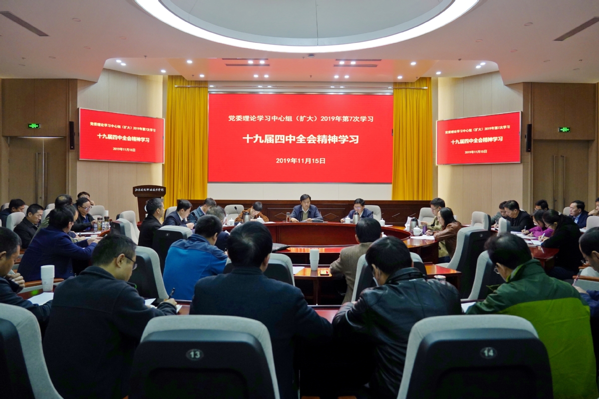 11月15日上午,校党委理论学习中心组在学术报告厅召开扩大会议,集中学习十九届四中全会精神。党委书记孙进教授主持学习会并作主讲发言,校党委理论学习中心组成员及全体中层干部正职参加了学习。