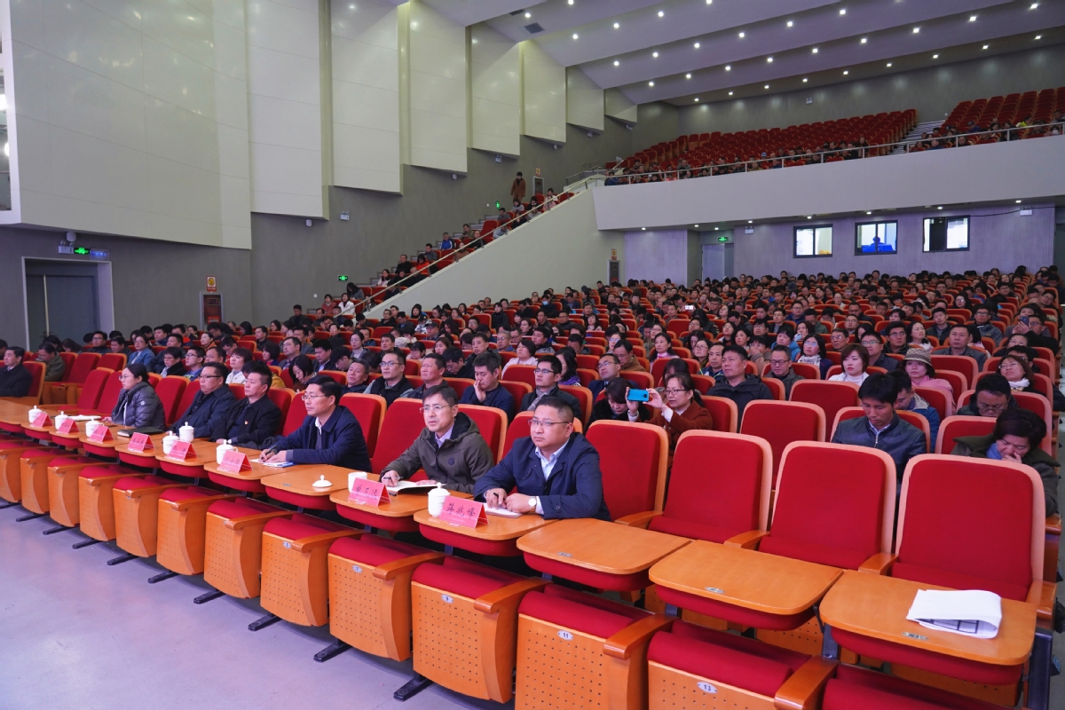 11月19日下午,我校2019年度人才培养质量分析会在会堂召开。麦可思公司总裁王伯庆博士应邀进行专业解读。学校党委书记孙进教授、院长沈士德教授、纪委书记魏勇、副院长曾凡远、刘海波、蒋兆峰等学校领导以及全校七百余名教职工参加了大会。会议由沈士德主持。