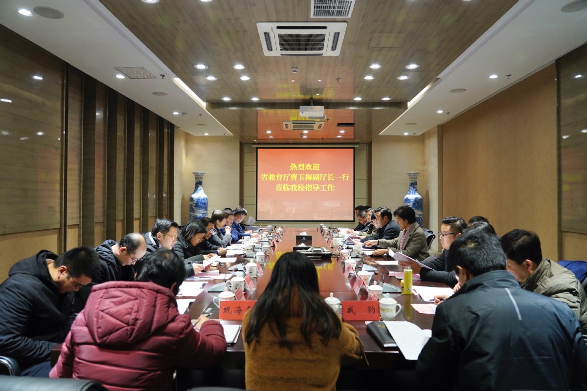 12月17日下午,省教育厅副厅长曹玉梅一行来我校调研,教育厅政策法规处长王兵、职业教育处长刘克勇、语言文字与继续教育处长沈晓冬等职能处室领导陪同调研。