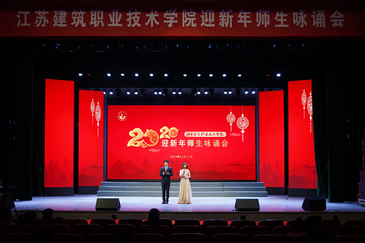 12月31日下午,我校“中国梦·建院情”迎新年师生咏诵会在会堂举行,来自全校17个党总支(直属党支部)的教职员工在这里济济一堂,喜迎2020年的到来。党委书记孙进教授,院长、党委副书记沈士德教授,党委副书记梁惠,纪委书记魏勇,副院长曾凡远、刘海波、蒋兆峰与千余名师生一起观看了演出。