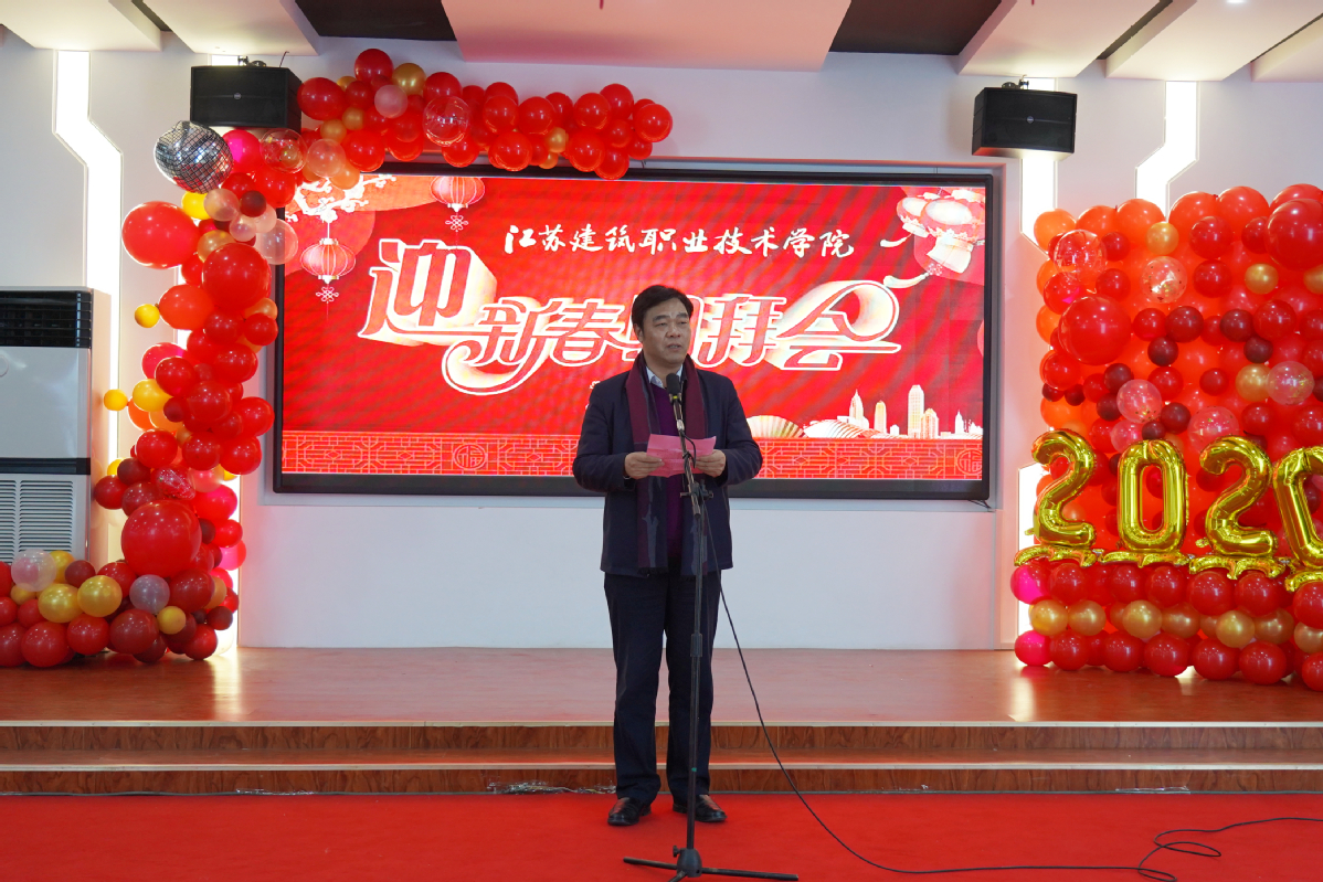 院长沈士德教授代表学校发表了热情洋溢的致辞,向辛勤工作在全校各个岗位的全体教职员工、领导干部,向心系学校发展的各民主党派代表和新入职的教师致以新年的问候。沈士德在致辞中回顾了学校办学四十年的发展历程与辉煌成就,总结了学校2019年在教学科研、师资队伍建设、人才培养质量、开放办学、服务师生等方面所取得的成绩;展望2020年,号召全校上下进一步解放思想,抢抓机遇,着力深化体制机制改革,强化内涵建设,激发办学活力,努力办好人民满意的高职教育。
