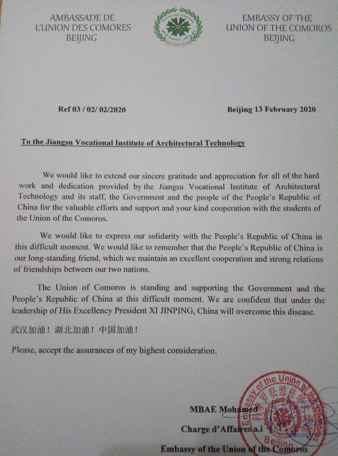 近期,我校陆续收到了合作院校及所在国家的驻华使领馆的公函和捐赠,为中国的抗疫之举加油,为中国祈福,为武汉加油。