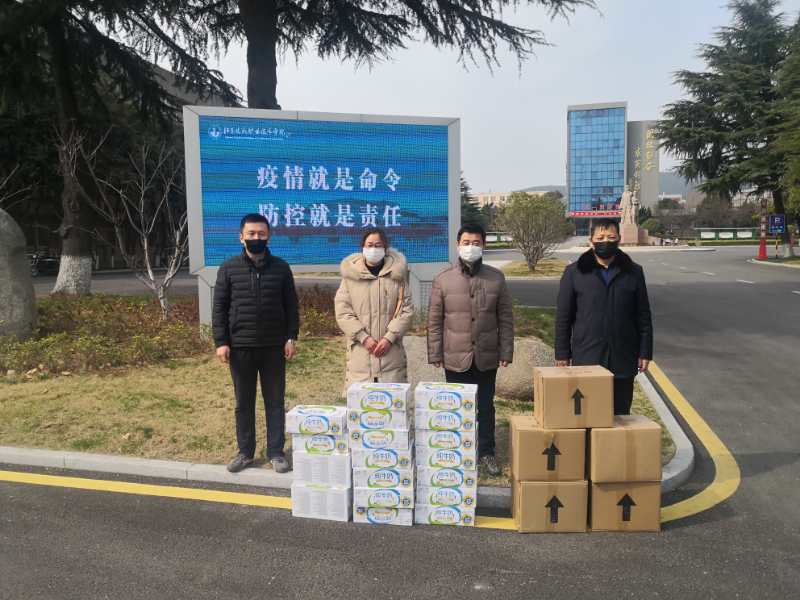 3月3日上午,江苏明锐餐饮管理有限责任公司总经理毛锐先生代表公司向我校捐赠一批84消毒液和牛奶,旨在用于我校新冠肺炎疫情防控工作,为我校师生创造安全可靠的学习生活环境保驾护航。校疫情防控领导小组办公室主任张衡宇、国资处处长徐卓、后勤中心副主任吴文辉代表学校接受捐赠。
