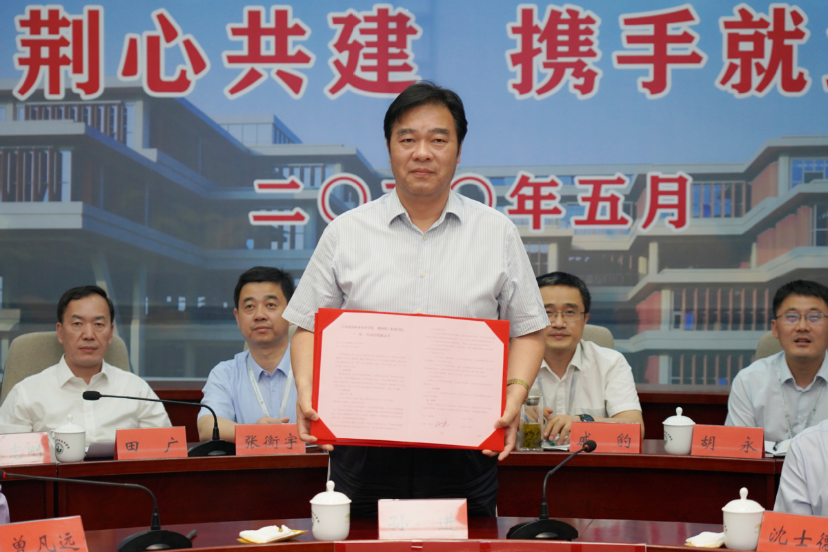 随后,荆州理工职业学院党委书记、院长别业舫和我校党委书记孙进在云端共同签署了《华体会体育 荆州理工职业学院“一帮一”行动合作行动书》。