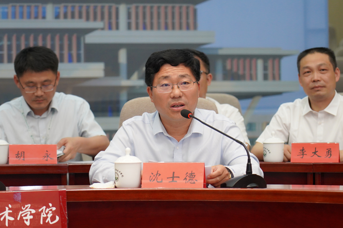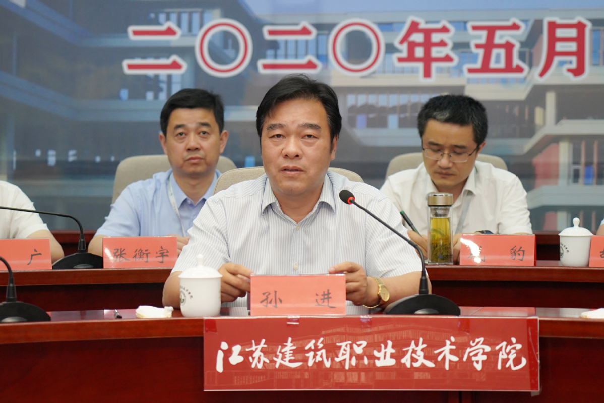 孙进代表我校全体师生向抗疫一线的荆州理工职业学院的广大师生表示崇高敬意,并简要介绍了徐州和我校事业发展概况。他说,荆州和徐州都是“九州”之一,都有着三国文化、楚汉文化的共同背景,今天的合作共建为两校的深入合作谱写了良好的开端,为将来在更高、更广阔的合作打下了坚实的基础。他希望双方进一步加强沟通和交流,在合作机制、团队、平台建设等方面迈出更大的步伐,确保合作顺利实施,不断开创共谋发展、合作双赢的新局面。