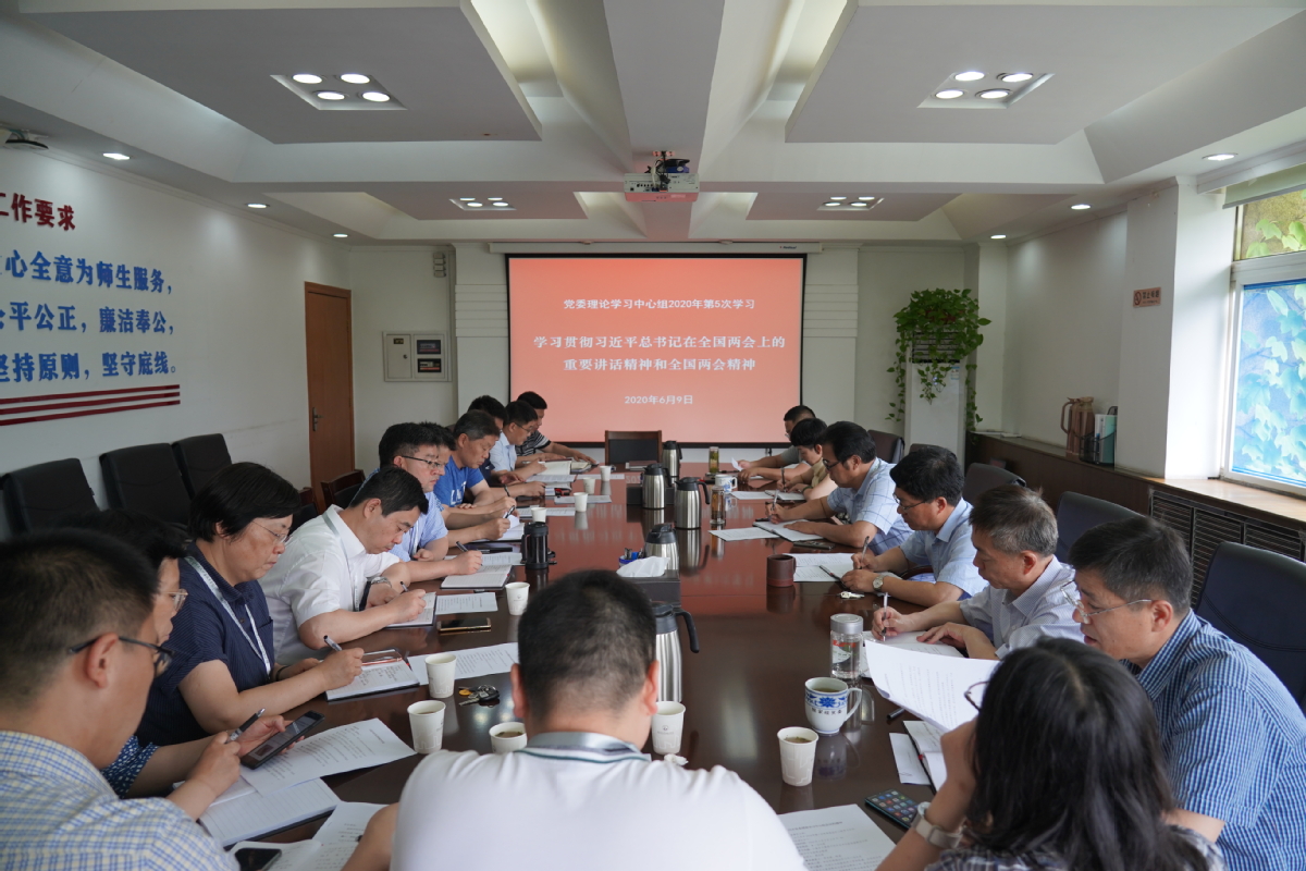 6月9日上午,校党委理论学习中心组在第一会议室召开2020年第5次学习会议,集中学习贯彻习近平总书记在全国两会上的重要讲话精神和全国两会精神。党委书记孙进教授主持学习会,校党委理论学习中心组成员参加学习。