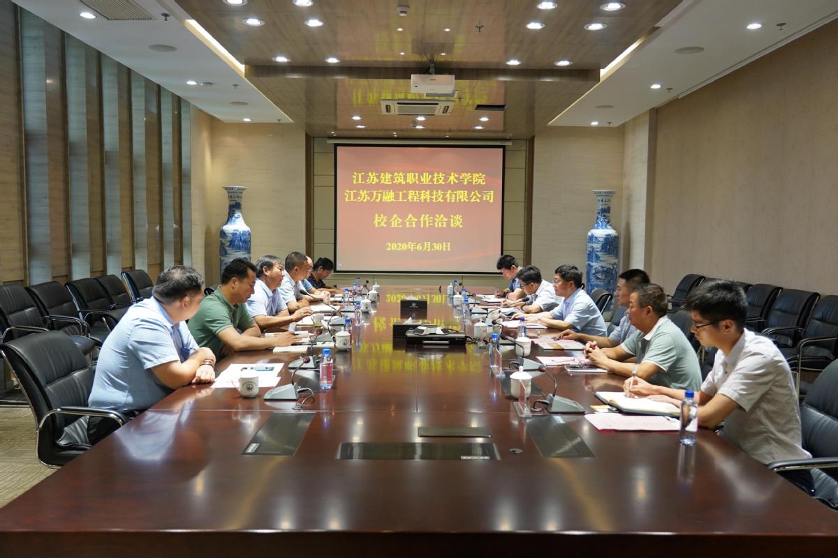 6月30日,江苏万融工程科技有限公司王凯一行6人来校洽谈校企合作。院长沈士德教授主持洽谈活动。科技处、校企合作处,建筑建造学院、智能制造学院相关负责同志参加洽谈。