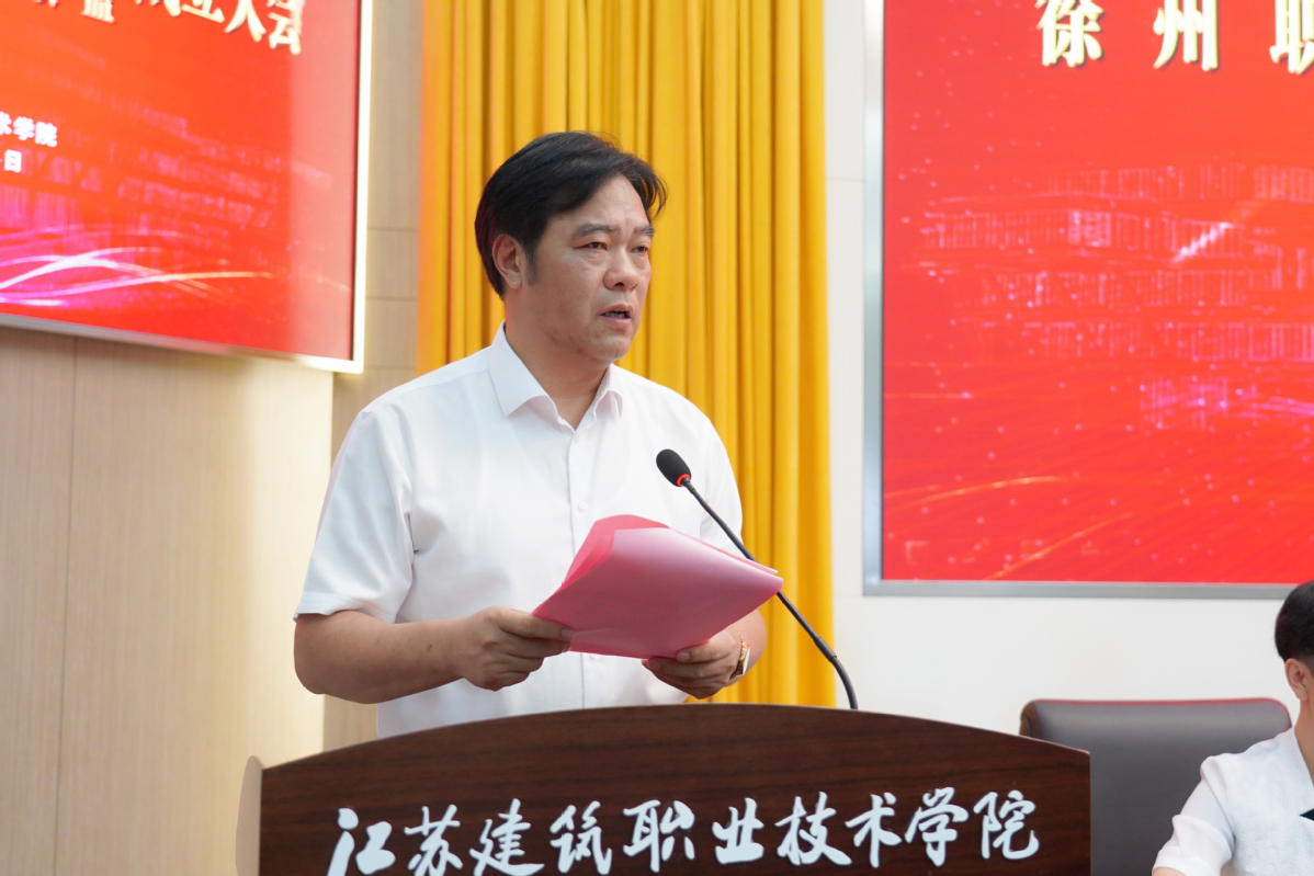 7月24日上午,江苏省建设职业教育行业指导委员会揭牌仪式暨徐州职业教育发展联盟成立大会在我校召开。省教育厅副厅长曹玉梅、省住房和城乡建设厅副巡视员章小刚、徐州市副市长李燕、省教育厅职教处处长刘克勇、市教育局局长石启红、市教育局副局长李清等省市领导出席大会,省建设职业教育行业指导委员会委员单位和徐州职业教育发展联盟各成员单位代表齐聚我校,共同见证省建设职教行指委和徐州职教发展联盟成立,共商我市职业教育创新发展大计。我校党委书记孙进教授、院长沈士德教授出席成立大会,党委副书记梁惠主持了大会。