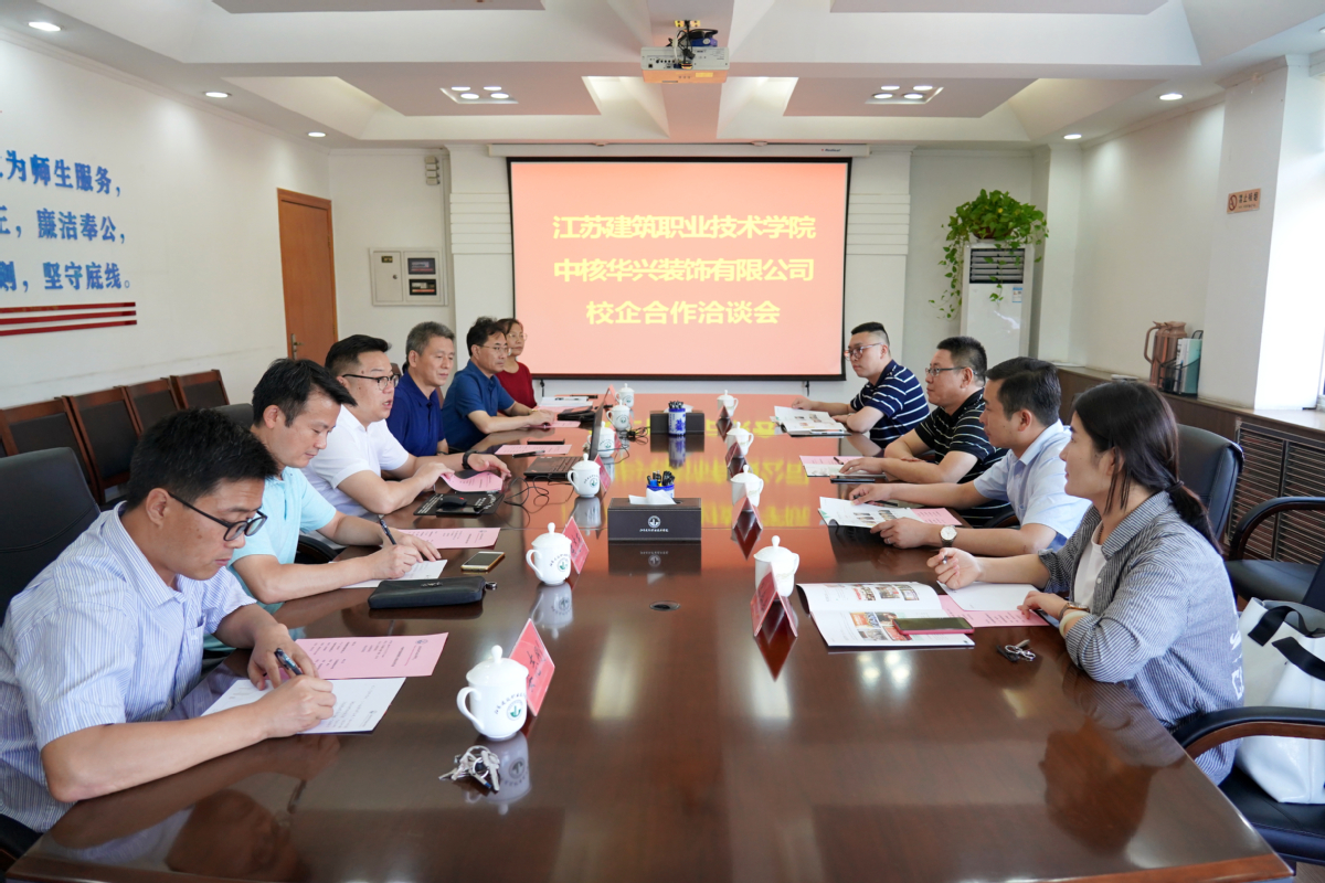 9月3日下午,南京和建科技集团有限公司副总经理向进、中核华兴装饰有限公司总经理助理崔亚东、田湾项目部经理李世海、办公室主任谷会会一行来校洽谈校企合作。副院长刘海波主持洽谈活动。校企合作处、建筑建造学院、建筑装饰学院、建筑智能学院负责人也一同参加。