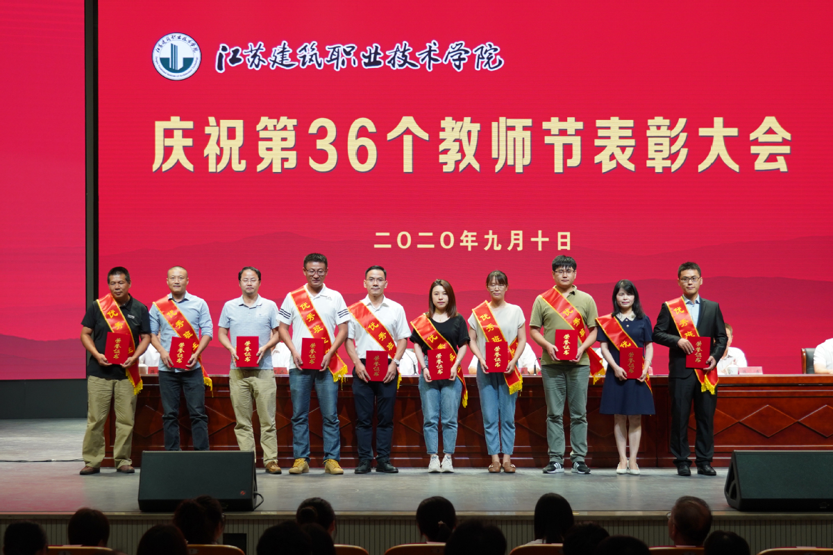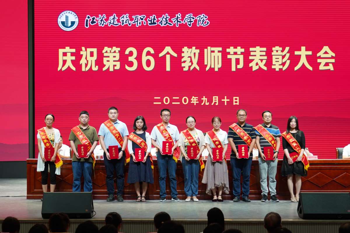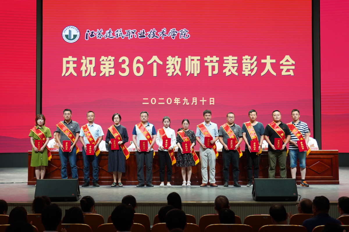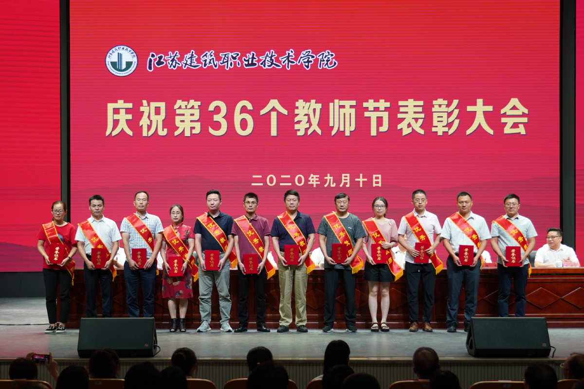 大会现场,39名2020年新进校教师进行了庄严的入职宣誓,装饰18-3班许家琛同学作为学生代表向教师节献词,建筑管理学院苏恒宇老师作为优秀教师代表发言。