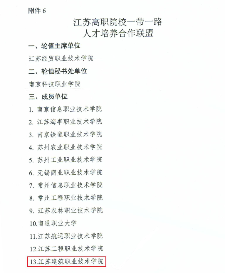 日前,江苏省教育厅发布了《关于启动实施江苏高校中外校群合作平台建设项目的通知》(苏教外函〔2020〕36号),我校成功入选“江苏高职院校一带一路人才培养合作联盟”、“江苏美国高职教育合作联盟”两个项目成员单位。