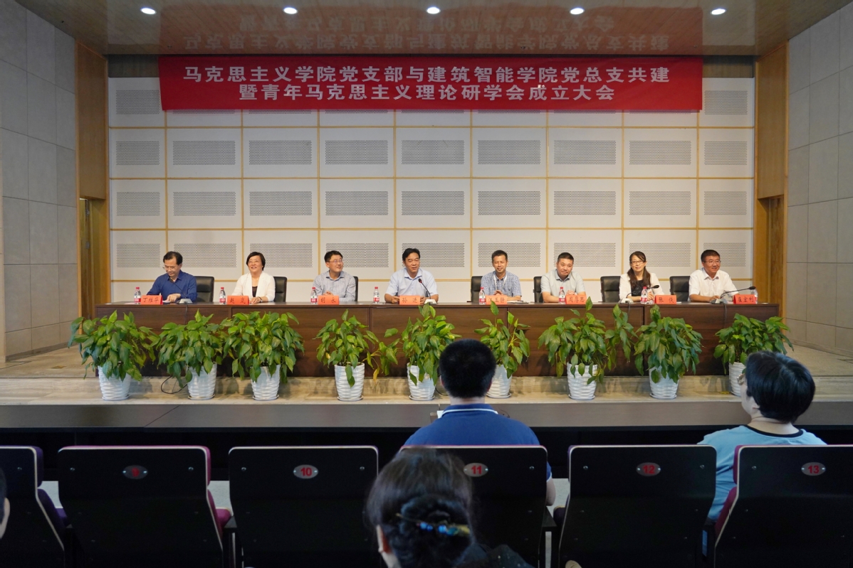 9月22日下午,马克思主义学院党支部与建筑智能学院党总支共建暨青年马克思主义理论研学会成立活动在图书馆学术报告厅举行。校党委书记孙进教授、党委组织部、学工处、团委相关负责人出席会议,马克思主义学院全体教师、建筑智能学院党员教师和入党积极分子参加会议。