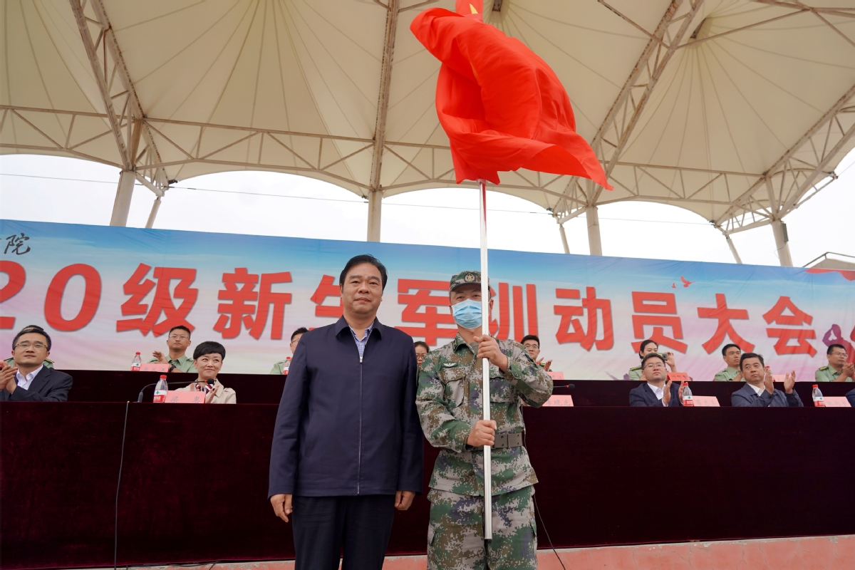 动员会上,孙进向承训教官团授军训团团旗。梁惠作军训动员讲话。她代表学校向承训部队多年来承担我校新生军训任务表示感谢,并要求全体参训新生要做到思想上高度重视,行动上严守纪律,把参加军训作为一次精神洗礼,进一步培养自己的爱国热情和担当意识,用一名军人的标准要求自己,以优异的成绩完成大学生涯第一课。