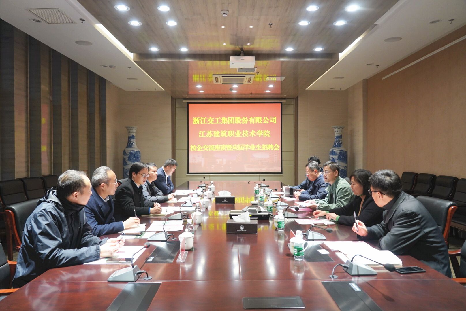 12月10日上午,我校与浙江交工集团股份公司在图书馆会议室进行校企合作洽谈。副院长曾凡远与浙江交工集团股份公司人力资源部总经理何刚刚出席洽谈。校企合作处、交通工程学院相关负责人参加活动。