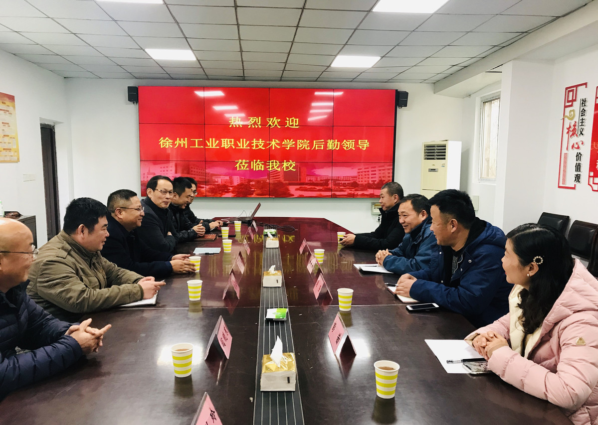 12月11日下午,徐州工业职业技术学院后勤服务中心党总支书记杜庆深一行4人来我校调研交流。副院长蒋兆峰接待了来访客人,后勤中心、保卫处等相关职能部门负责人陪同交流。