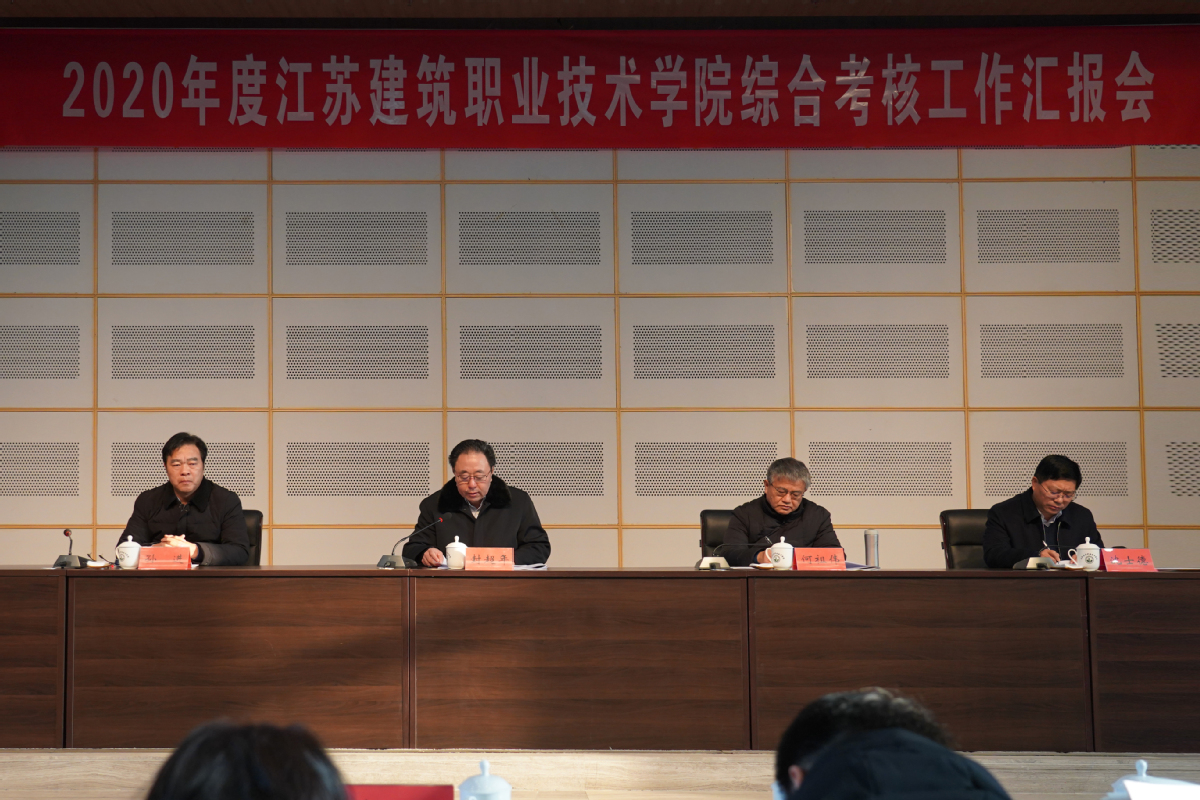 1月4日,我校在图书馆报告厅召开省高校综合考核工作汇报会。省委第十综合考核组组长南京林业大学原党委书记封超年同志,副组长无锡工艺职业技术学院原党委书记何祖伟同志,以及综合考核组全体成员出席会议。学校领导班子成员、党委委员、纪委委员、全体中层正职干部、区级以上党代表、人大代表、政协委员、民主党派负责人、高级职称人员和职工代表等参加会议。
