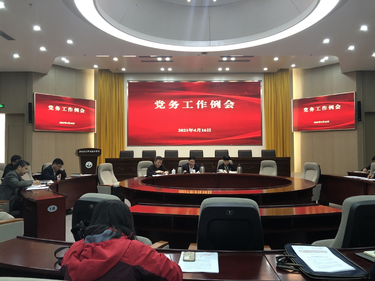 4月16日上午,学校在学术报告厅召开党务工作例会,研究部署近一阶段学校党务工作。院长、党委副书记沈士德教授出席并主持会议。党委副书记梁惠、纪委书记魏勇及各党群部门负责人、二级党组织负责人参加会议。